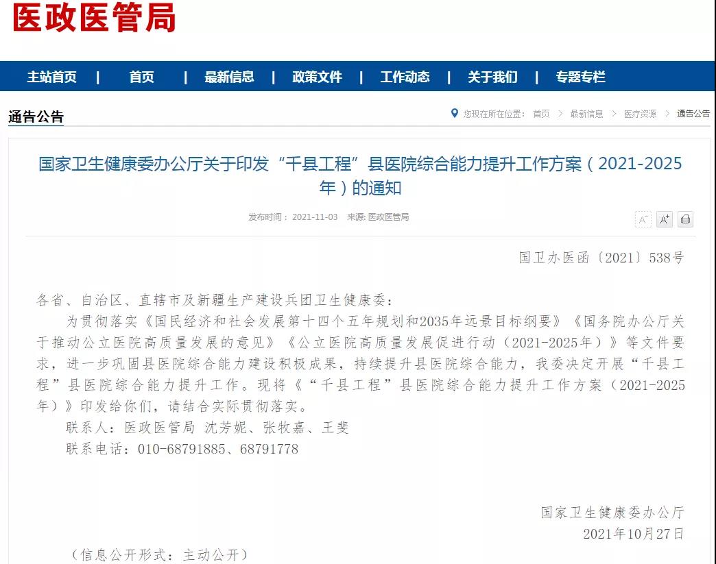 《“千縣工程”縣醫(yī)院綜合能力提升工作方案(2021-2025年)》