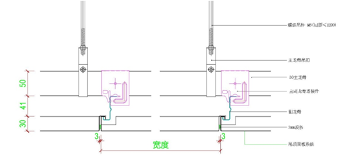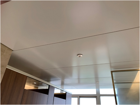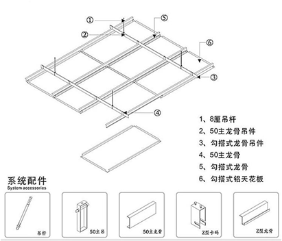 采用勾搭式安裝工藝,鋼制吊頂尺寸規格大,整體性效果美觀大方,表面紋理豐富,施工周期短;管道維修方便,