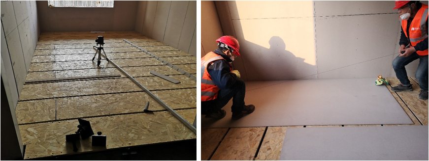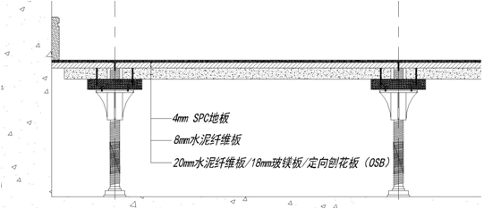 采用ABS高強支撐架空基層板,可采用20mm水泥纖維板、18mm玻鎂板、18mmOBS定向刨花板做基層調平,錯縫鋪貼8mm水泥纖維板及完成地面架空,面層可根據設計要求做各種材料的施工,施工效率高,架空高度可控5cm-25cm;
