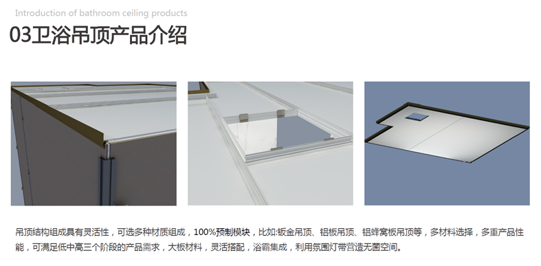 隨著現代工業的不斷發展,材料輕質化、工藝裝配化、集成化逐漸成為建筑內裝發展的趨勢,這一趨勢將隨著建筑行業的進步更加明顯。裝配式內裝系統,包括隔墻墻體、墻板、地面、吊頂、整體衛生間;采用標準化生產、模塊化安裝,工廠預制率及現場裝配率均達80%,顯著提升施工效率,縮短施工周期。裝配式內裝整體解決方案提供了:裝配式隔墻系統、墻飾面系統、吊頂系統、地面系統、衛浴系統。